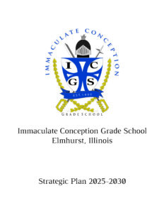The present Immaculate Conception Church and Grade School was built next to the hall on Arthur Street in 1929. Father John Foley (1924-1932) thought it best to build a combined church and school building. Immaculate Conception Church is located on the ground floor. Eight classrooms were completed on the second floor, with an unfinished third floor. The third floor was completed in 1936 to be used for High School classes until 1953 when the parish was granted a loan from the Diocese of Joliet for the building of a new high school building at 217 Cottage Hill Avenue. In 1957, eight additional classrooms were added to the grade school building. In 1961 a Parish Center was erected on the corner of York and Arthur consisting of a gymnasium, a parish meeting hall and kitchen, several smaller meeting rooms, and an 800 seat worship space named Sacred Heart Chapel.
